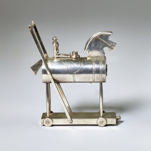 Some objects showcase the artistry of the maker like this toy horse cigar cutter, 1909