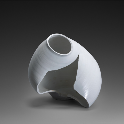 Large White Porcelain Vessel, 2019. Glazed porcelain. 20 1/2 × 21 7/8 × 17 3/4 inches, copyright Kondo Takahiro. (Photo courtesy of Lowe Art Museum)
