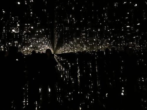 “One day, I was in the installation room by myself, and I almost felt like a little polka dot, lost in this infinite space,” says Inacio about her experience inside the installation. She added that Kusama is “a really iconic artist” who has been working on her ‘Infinity Rooms’ since 1965. “Her work is a testament of how accessible it is to different audiences.”