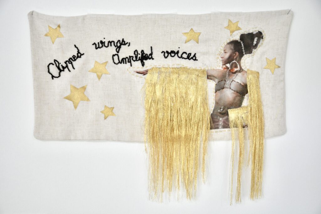 With “Clipped Wings, Amplified Voices,” Miami-based Haitian-American artist Laetitia Adam-Rabel, says in her artwork statement that the multi-media work reveals how, sometimes, “our greatest strengths come through when faced with our biggest challenges. It is about resilience, determination, faith and using our talents in the face of adversity.”