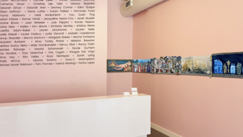 View of the installation at The CAMP Gallery referencing classical frieze. (Photo courtesy of The CAMP Gallery)