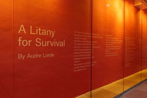 The installation features “A Litany for Survival,” by Audre Lorde, one of the artist’s favorite poets. (Photo courtesy of Pedro Wazzan)