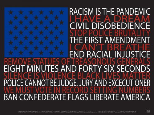 Added museum cofounder Allison Freidin: “In this particular time, it’s very clear that all of the artists that are in the show have a very similar message that they want to convey, which is their dissatisfaction with the current state of affairs and the need for equality and to eliminate the racism in our country.”