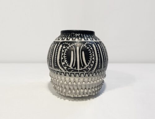A piece of pottery by founder Ellie Schneiderman is on display and placed in the center of the gallery at Oolite Arts on Lincoln Road for its summer exhibition, “It Was Always About You . . .” (Photo courtesy of Oolite Arts)