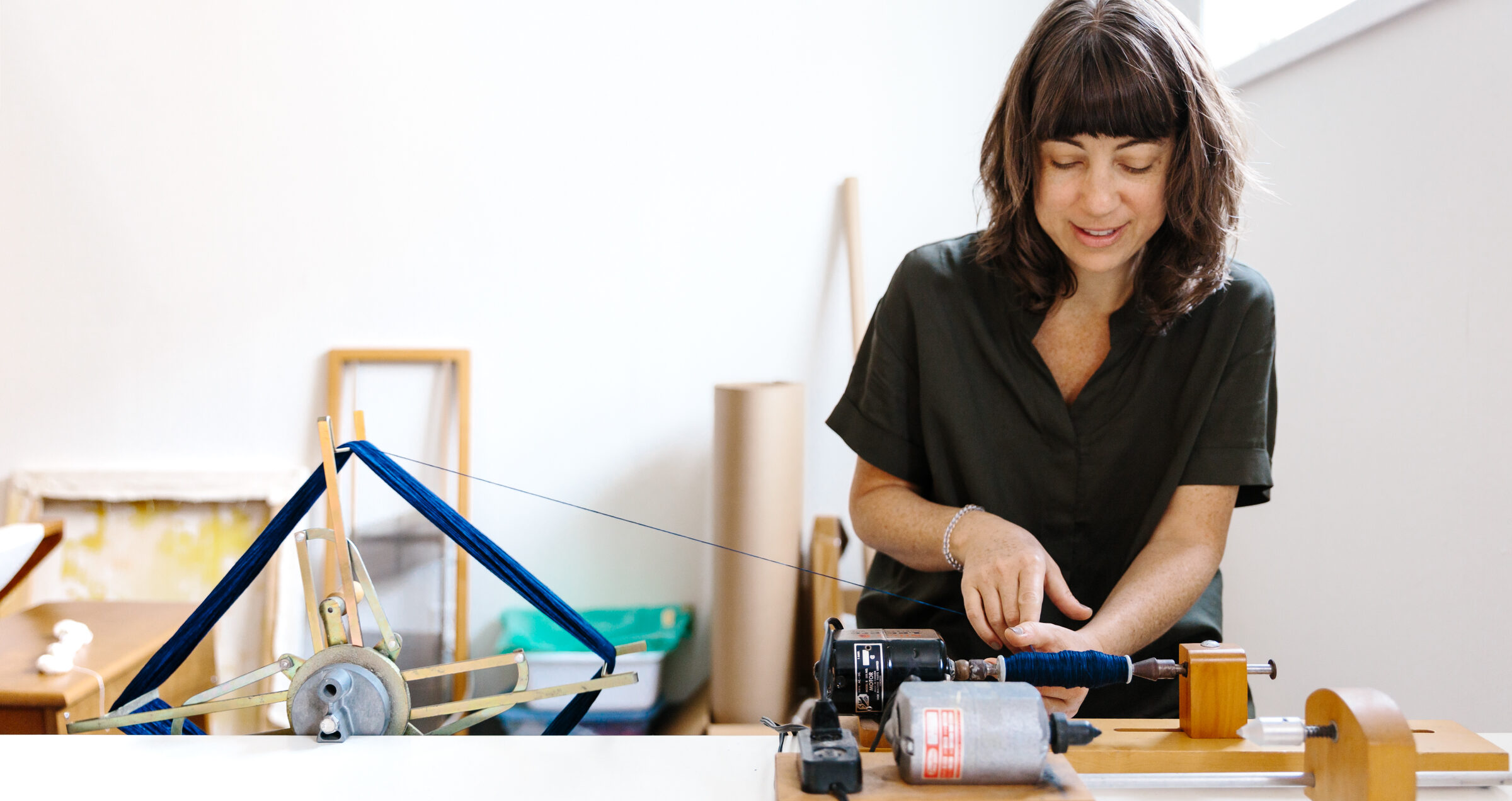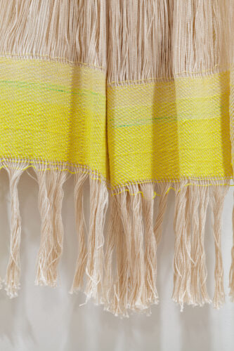 Frances Trombly, Weaving, (Weld with Canvas Warp),” 2020 Handwoven, Hand-dyed (Weld) silk and rayon,