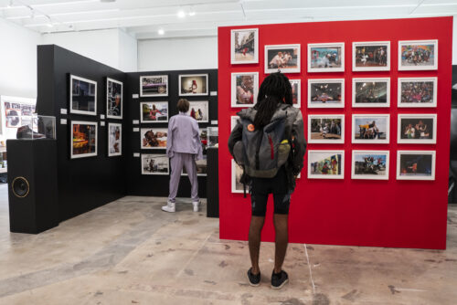 Visitors to The Art of Hip Hop museum look at the artworks of Miami-based visual artist Esdras T. Thelusma, left in the background, and Martha Cooper, front right, an American photojournalist renowned for capturing the New York City graffiti scene during the 1970s and 1980s. (Photo courtesy of The Art of Hip Hop)