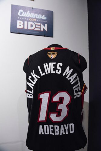 HistoryMiami displays a “Cubanos Con Biden” sign and a Miami HEAT jersey emblazoned with “Black Lives Matter,” part of the “Collecting 2020” exhibit. (Photo courtesy of HistoryMiami Museum)