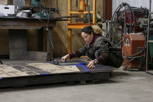 Artist GeoVanna Gonzalez prepares for an exhibition at Locust Projects that was later postponed. (Photo courtesy of Pulp Arts)