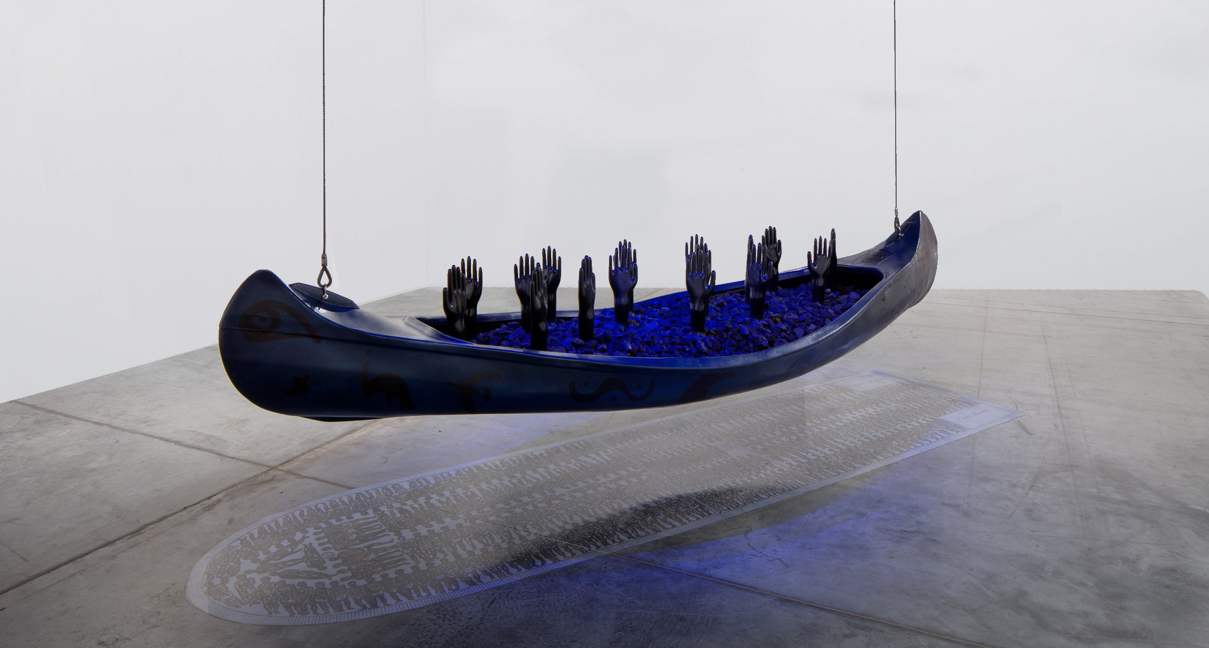 Though some pieces were created decades ago, Seidel points to their relevance today. Works such as “Mojotech,” “Gliding Into Midnight” and “A Woman’s Boat: Voyages” — combined with fragments of the installation “In Troubled Waters” — all speak to this experience.