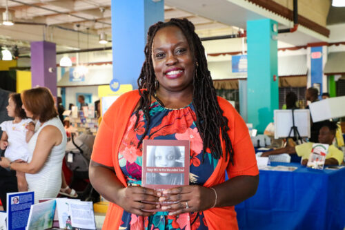Sandra Jean Charite, an author at the Marketplace at the Little Haiti Book Festival. The festival features books available in several languages including English, Haitian Creole, and French. (Photo courtesy of Miami Dade College/ Miami Book Fair)