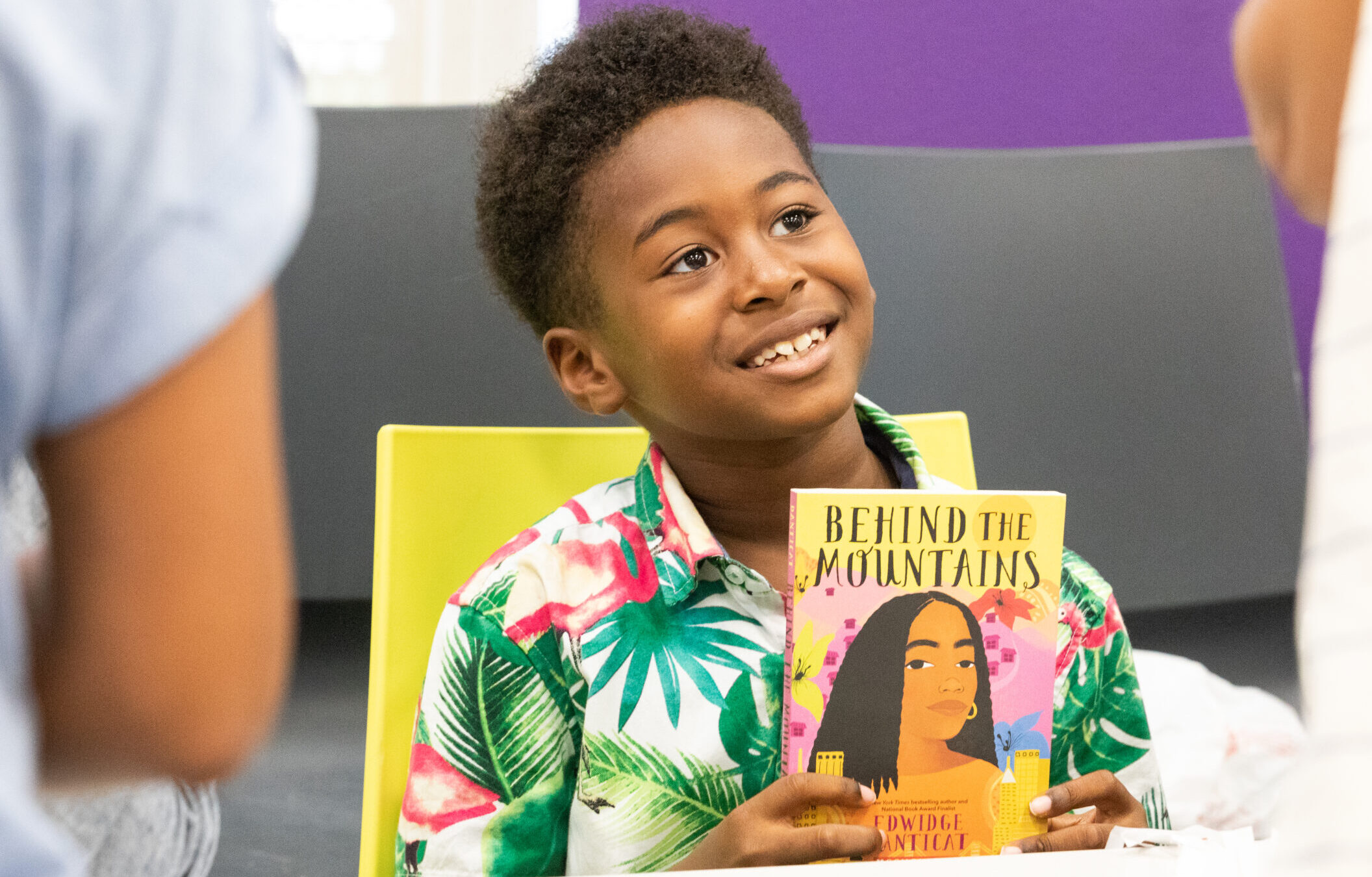 A young reader and his book during the 2022 Little Haiti Book Festival. The festival returns Sunday, May 7, at three locations in the Miami neighborhood. (Photo courtesy of Miami Book Fair).