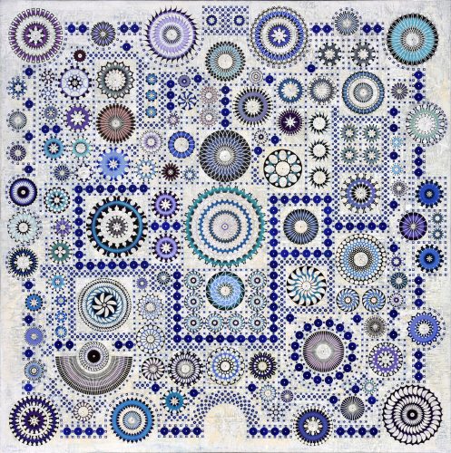 Top photo: The lacy filigree of geometric patterns in “Celestial City” (2017) takes the eye on a circular journey. (Photo courtesy of Carlos Estevez)