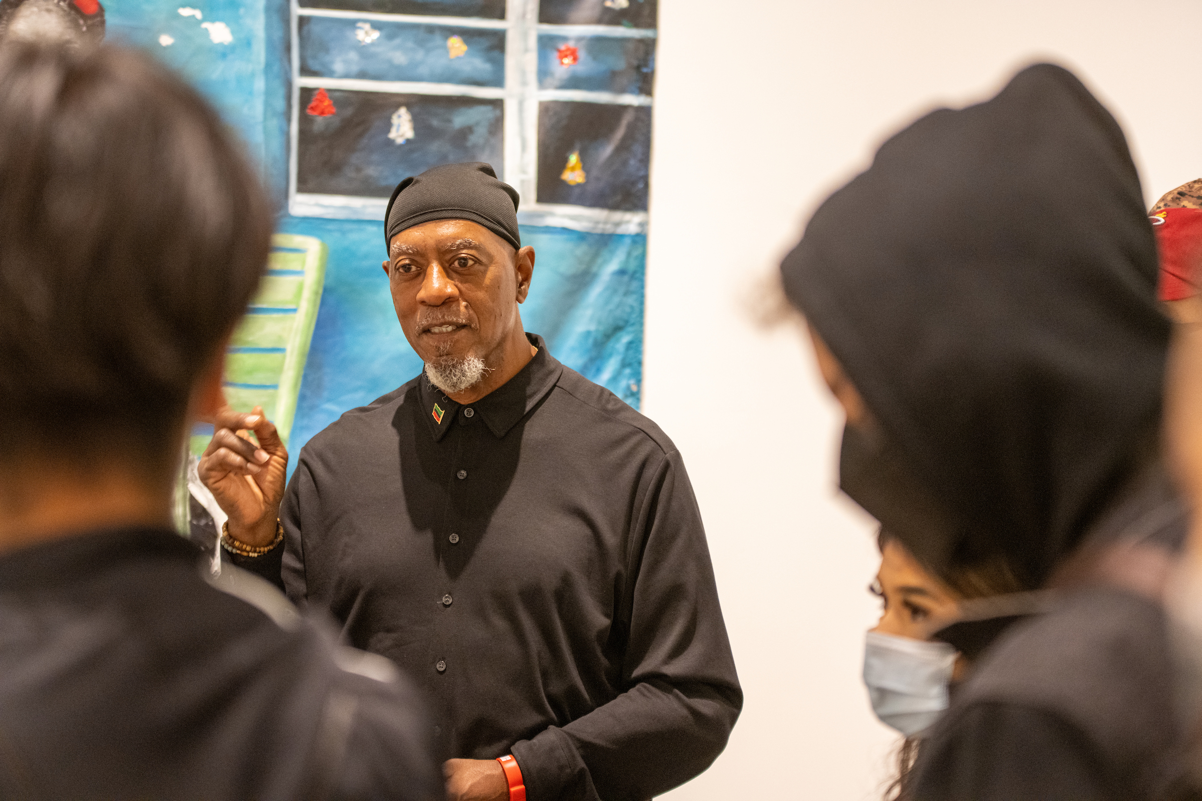 “Matters of the Inner City” was produced with the support of Oolite Arts; Humes won one of its Creator Awards in 2020. He spoke before a standing-room crowd of more than 50 at a Jan. 22 reception at the gallery.