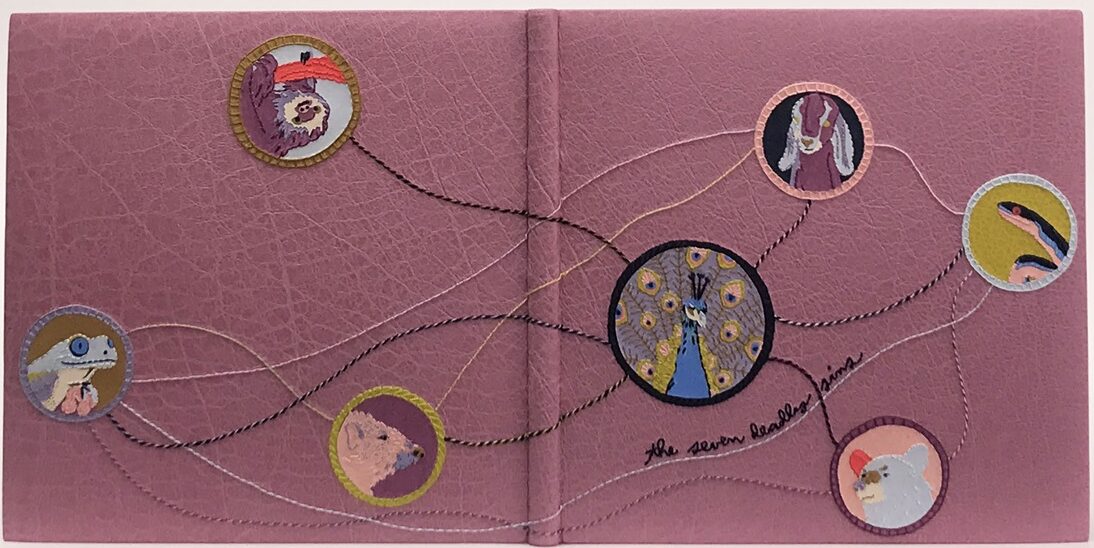 “It’s really great to see in person, because it feels really unique, almost kind of rubbery,” says Sarah Press, co-founder of Mob of Two along with Tiana Krahn, whose company publishes small edition artists’ book collaborations. “He kind of just figured out how to make a book out of duct tape in his garage one day a few years ago, and we thought it was so cool that we helped him make an edition of it.”