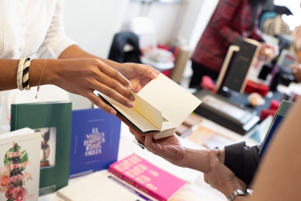 Visitors check out the artist’s books at Tropic Bound 2023. The fair will return to Miami Feb. 8 through Feb. 9. (Photo by Monica McGivern)