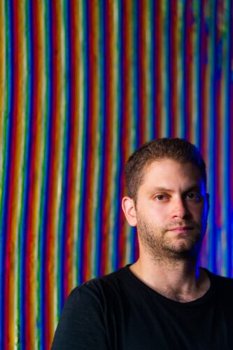 Miami-based artist Loriel Beltrán creates abstract paintings by using a technique in which he builds cubes, then pours paint to create solid blocks. (Photo courtesy of Karli Evans)