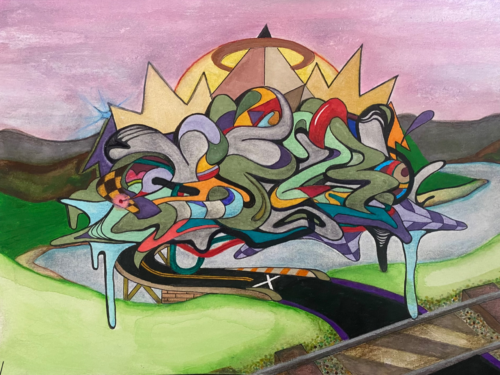 Veefer, “Road & Track,” 2023, ink and watercolor on paper. (Photo courtesy of the artist)