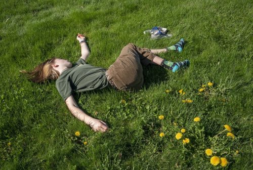 “Elsa in the Grass with Dandelions” shows us the importance of taking time to kick back, relax and take our shoes off even, if (and especially when) we are dealing with challenges.