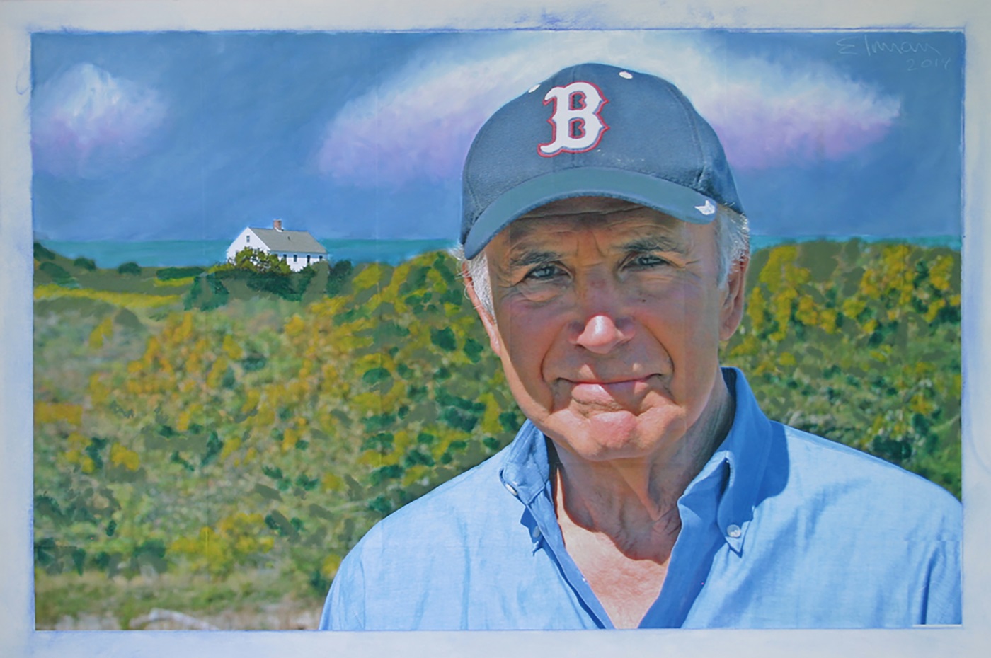 Raymond Elman’s “Pictured Above Is At Least One Person Who Loves the Boston Red Sox and Edward Hopper’s House,” Morton Dean, 2014, 60 X 40, is one of the 27 portraits featured in an exhibition at the Jewish Museum of Florida-FIU through March 3.