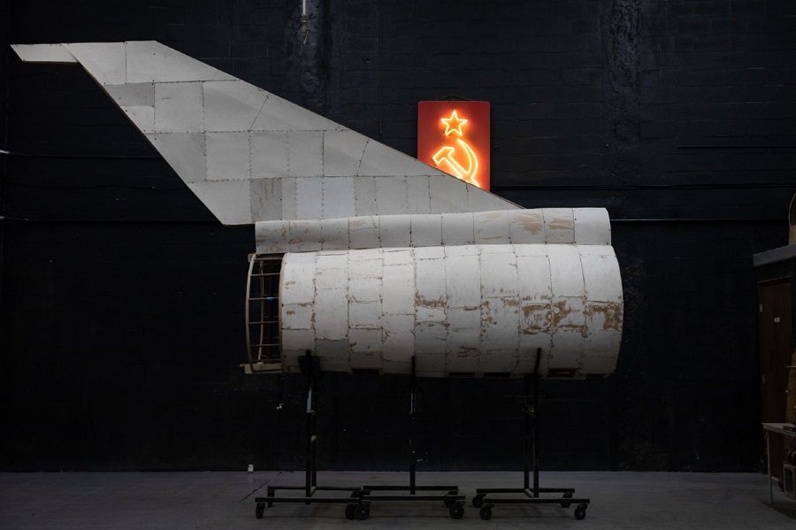 “The plane is such a recognizable object of military control,” Bradley explains, adding that the sections they picked for this exhibition were intentionally pieces that give the plane its power.