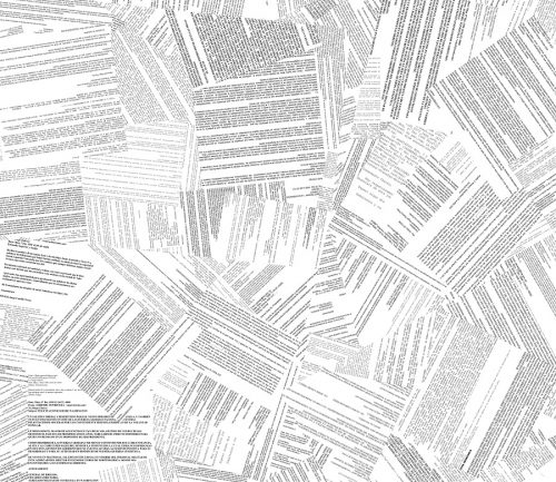 Together, both installations make up 1,500 documents of a “datagram,” a term coined by the artist, in which the aesthetic of the site-specific work examines the network of documents as they make their circuitous route through cyberspace.