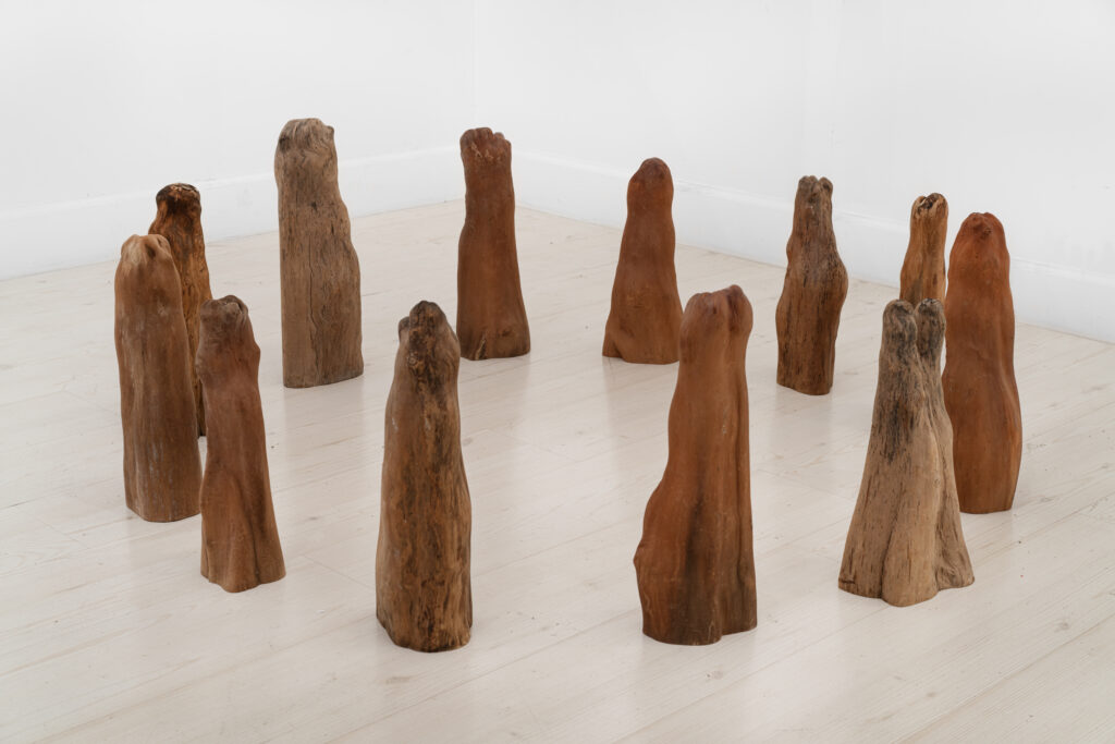 As a youngster driving with his family from New Jersey to Florida to visit his grandparents, there was always a stop at Thom Gaskins Cypress Knee Museum along U.S. 27. Arranged in Scholl’s “architecture” of a dodecagon is the installation “Untitled (“Cypress Knees),” 2023, acquired objects. (Photo by Michael R. Lopez)
