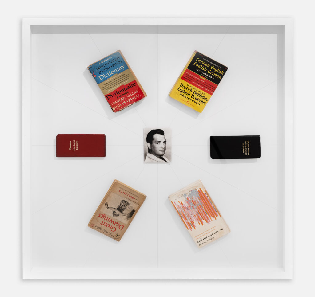 “If I can find the right objects and infuse those objects with the power that they have, I can take you somewhere that you didn’t expect to go.”  In each of the works, there is also something else that adds to the narrative. In the middle of the first Kennedy piece is a teletype from a news wire service that announces the breaking news, a collection of Jack Kerouac books has the author’s original obituary photo, and a 1972 Olympic torch is included in a work about the Munich massacre during the 1972 terrorist attack on Israeli Olympic team members.