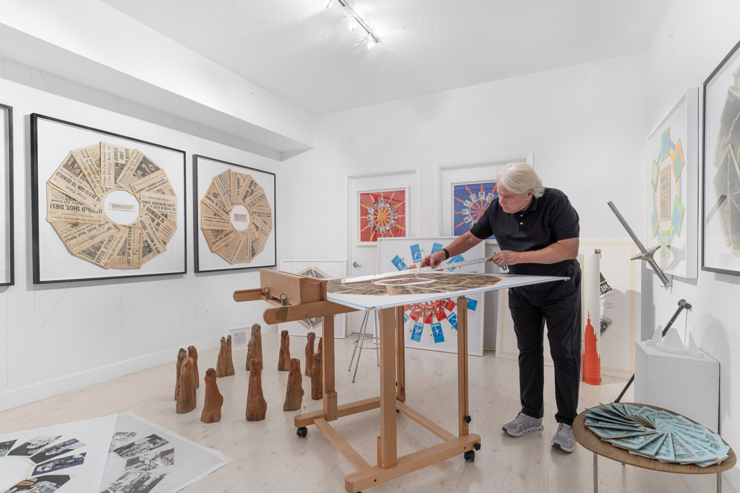 “Making art is what I’m going to do the rest of my life,” says Dennis Scholl, shown surrounded by his work at his Miami Beach studio. (Photo by Michael R. Lopez)